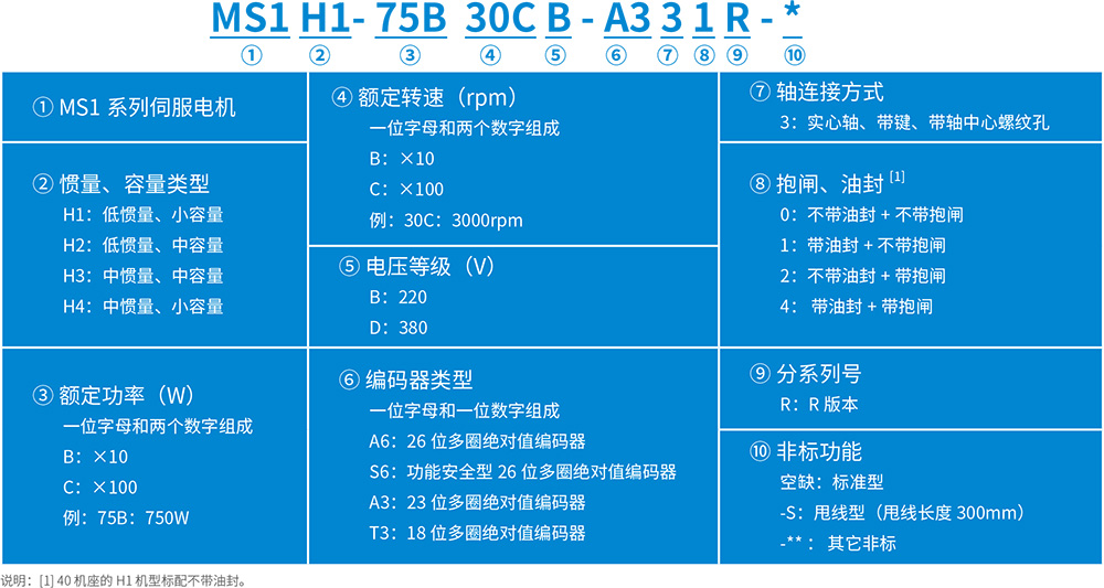 更全系列:40/60/80 机座 H1 机型为超小惯量机型,适用于快速点位,控制场合,没有快速点位需求场合统一使用 H4 机型电机。增加 26 位多圈绝对值编码器及功能安全型 26 位多圈绝对值编码器,满足更高精度、更高安全的要求